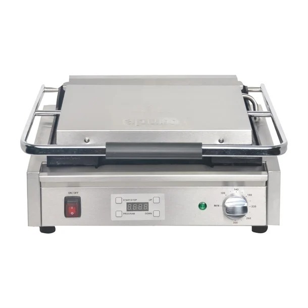 The swivel-top flat plate ensures maximum contact with the food at all times, distributing heat quickly and evenly to speed up your cooking times. Heat-up times are fast too, helping you cook to order and save on running costs during quieter periods.