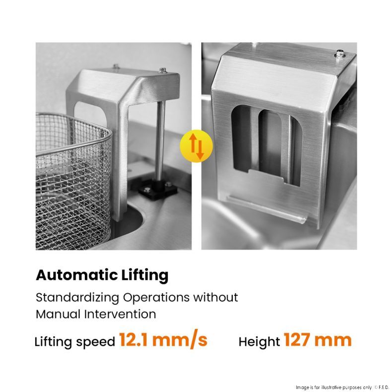 Once cooking is complete, the device automatically lifts without manual intervention. The fully automated process eliminates the need for constant supervision. The oil temperature is controlled precisely to the degree, effectively addressing issues that traditional fryers may encounter, such as forgetting to remove the food when the kitchen is busy, large temperature fluctuations, inconsistent taste, difficulty in standardising operations, and insufficient manpower.