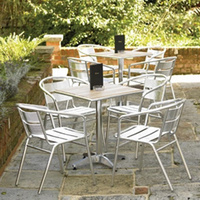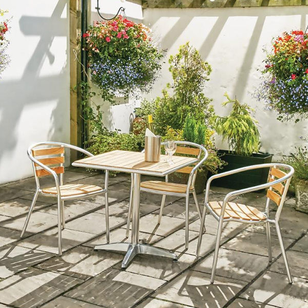 Create stylish outdoor dining areas with the attractive Bolero Ash Top Table. This practical table features a pre-oiled ash top that makes the table weather-resistant, rust-proof and virtually maintenance free. This allows the table to withstand prolonged outdoor use in busy cafes, pubs, bars and restaurants. The frame itself is made from Great for outdoor catering use.