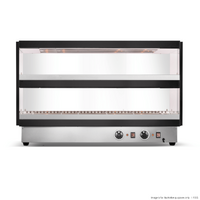 This unit is crafted for commercial environments, enabling effortless control with a mechanical controller and clear temperature display. The specialized stainless steel guide is designed to ensure a smooth transition of food from the back to the front for service
