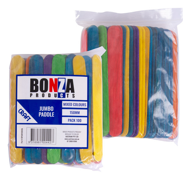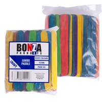 BONZA Jumbo Paddle Pop Stick 150mm Mixed Colours Pkt of 100