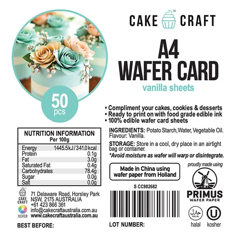 Cake Craft Wafer Card A4 Vanilla Pk of 50