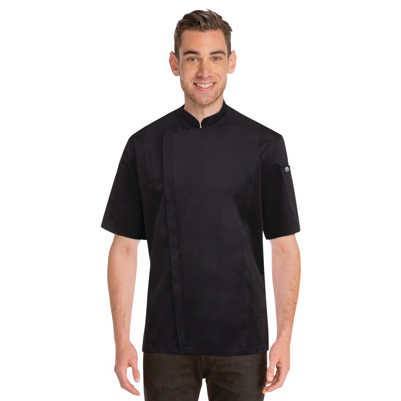 Chefworks Cannes Coat with Press Studs & Short Sleeve Black [Size: XXS]