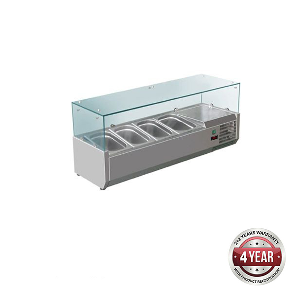Countertop Prep Fridge Glass Top Fits 4x 1/3 GN Pans