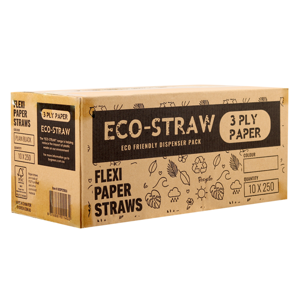 Eco-Straw Paper Black 4 Ply Flexi Straw Pack of 220