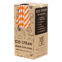 Eco-Straw Regular Paper Straw Orange/White stripe PK of 250
