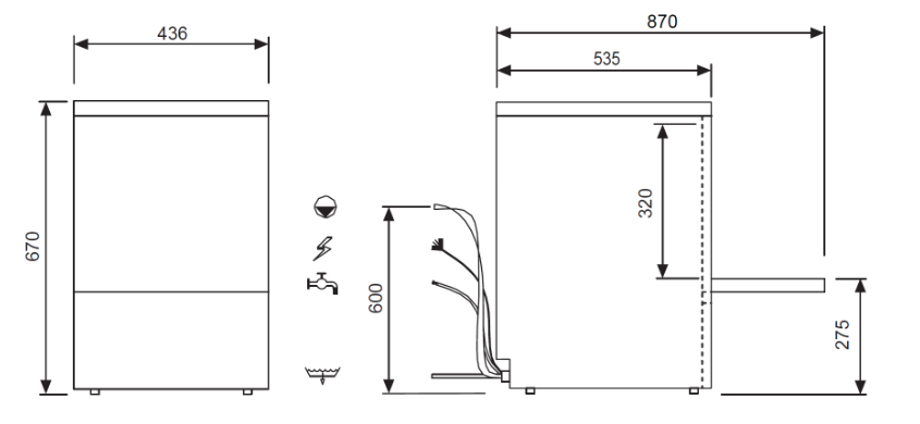 • Rinse Pump Optional Extra, Drain Pump Standard