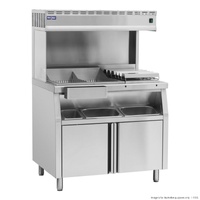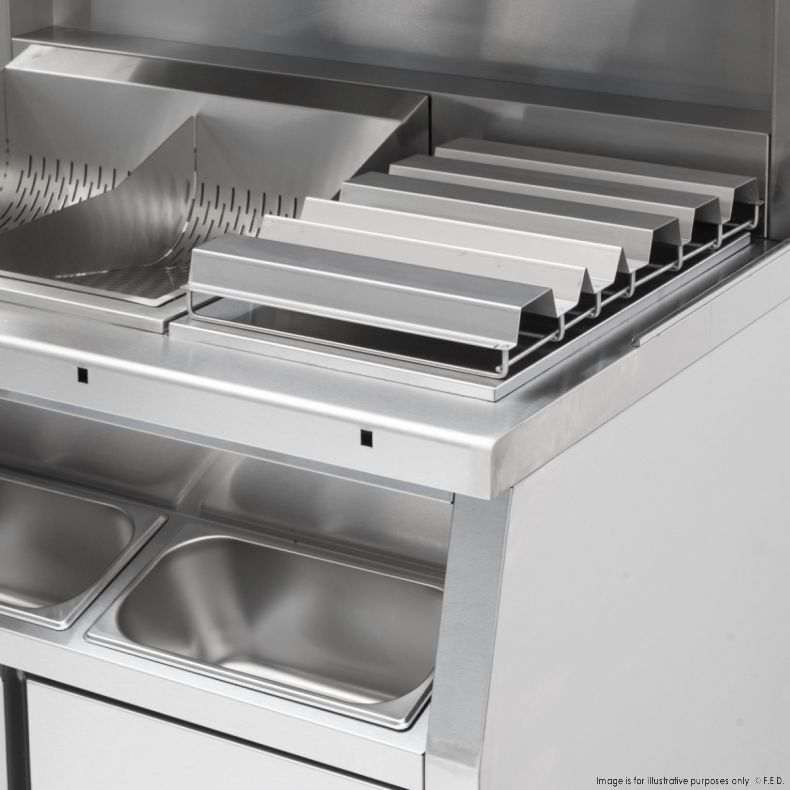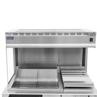 • Comes with front stainless steel box and 2x 1/3 and 1x 1/6 150mm deep GN pans