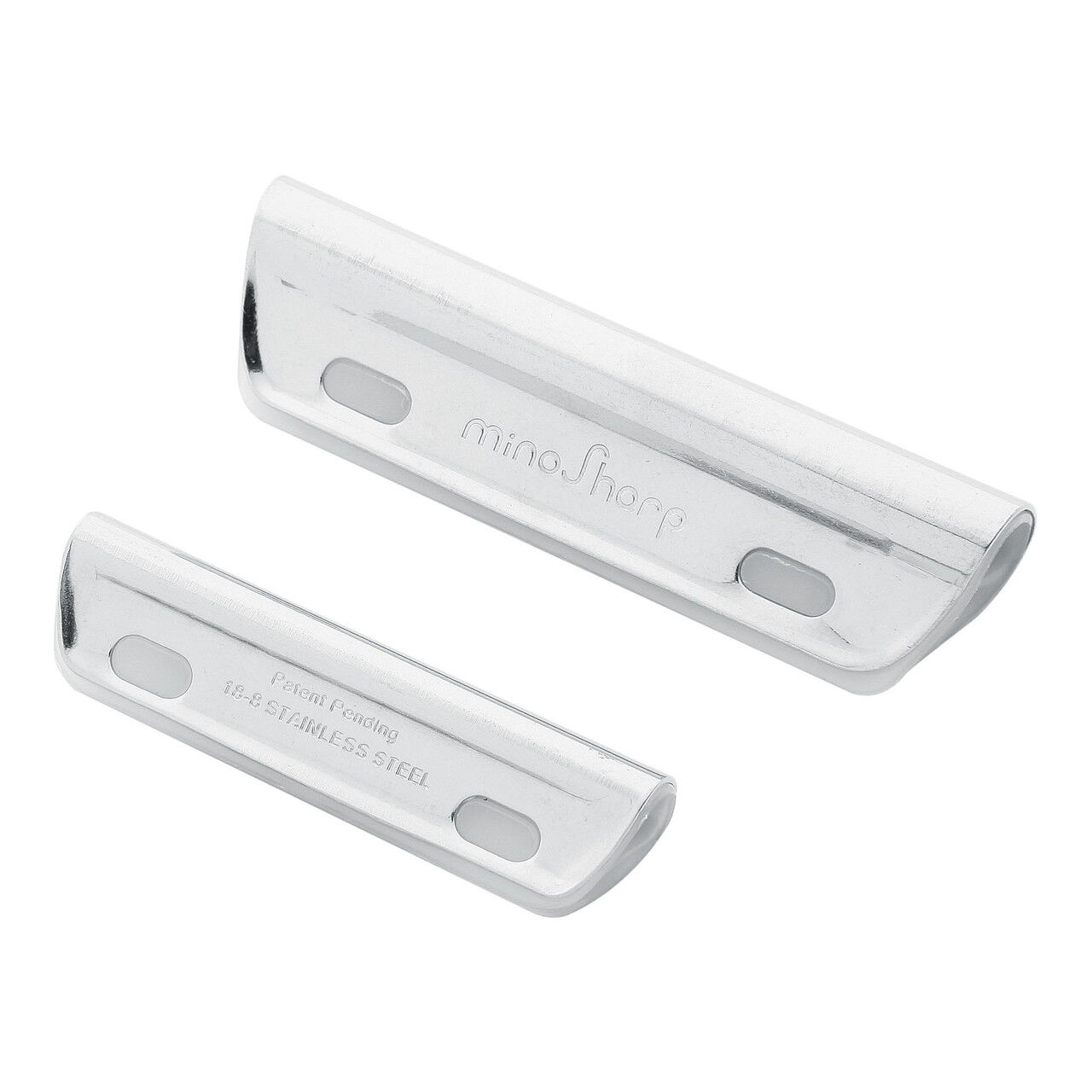 This MinoSharp Guide Rail set will prove itself invaluable in no time. This set includes two size or guide rails for use on both large and small knives. Each stainless-steel guide is lined with plastic to avoid scratching during use. These guide rails take out the guess work when sharpening by whetstone and will set a 15-degree cutting edge – perfect for GLOBAL knives or any other Japanese knife brand.