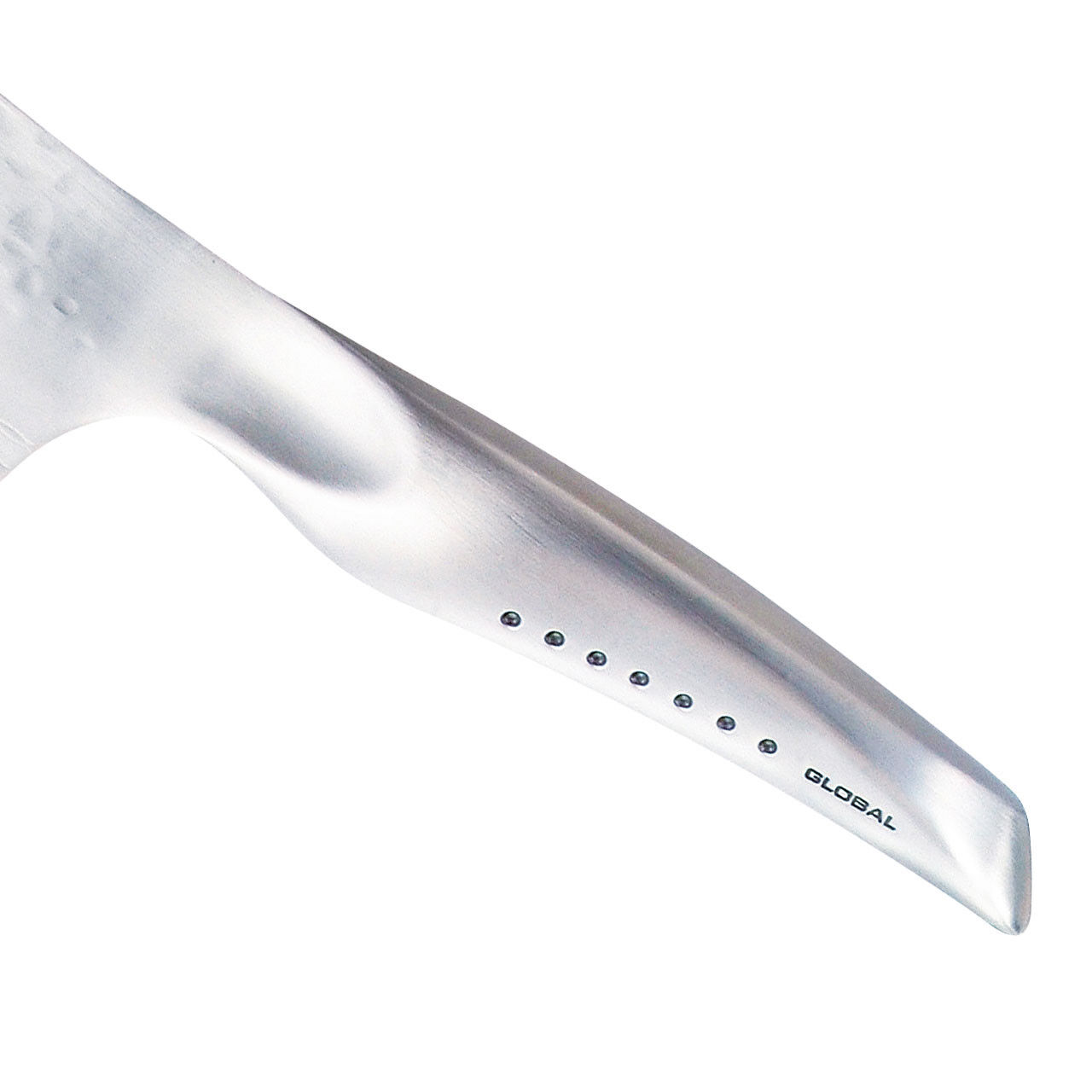 The GLOBAL® SAI collection follows in the same tradition as the GLOBAL Classic knives and are made in the same fashion by skilled Japanese craftsmen in Yoshikin's factory. An entirely new handle design incorporates an ergonomic thumb-rest to ease the cutting motion. The blades are crafted from special CROMOVA 18 SANSO material, comprising three layers of Stainless Steel.