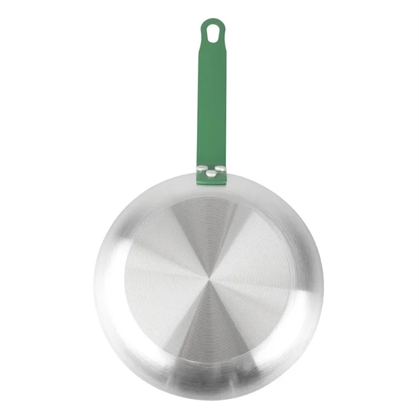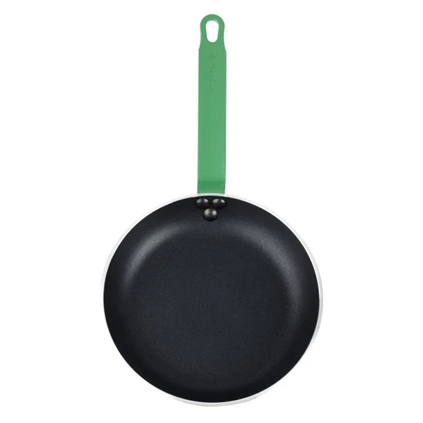 The pan's handle is colour coded green, which typically signifies it's used for preparing fruit and vegetables ingredients. To help you colour-code your kitchen items to minimise the risk of cross-contamination, the 240mm Hygiplas non-stick frying pan is also available in blue (HT971), red (HT965) and purple (HT968).