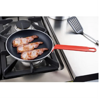 Strong and durable, the 240mm Hygiplas Platinum Plus Teflon Non-Stick frying pan is a great choice for the professional kitchen. Designed for everyday commercial use, the pan features a colour-coded red handle, so you'll always know which pan to use to prevent any cross-contamination. The solid handle also includes a hanging hook, so it's easy to store away and access whenever needed.