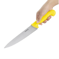 Colour coding helps you to provide a hygienic service and reduces the risk of cross contamination. This Hygiplas chefs knife is colour-coded yellow which signifies the knife is for use with raw poultry. A dishwasher proof handle makes the knife easy to clean and maintain, perfect for use in busy kitchens.