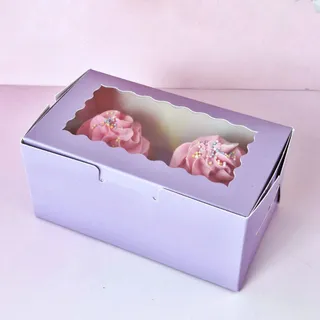 Lilac 2 Hole Cupcake Box w/ Lid 6.2 x 3.5 x 2.9Inch