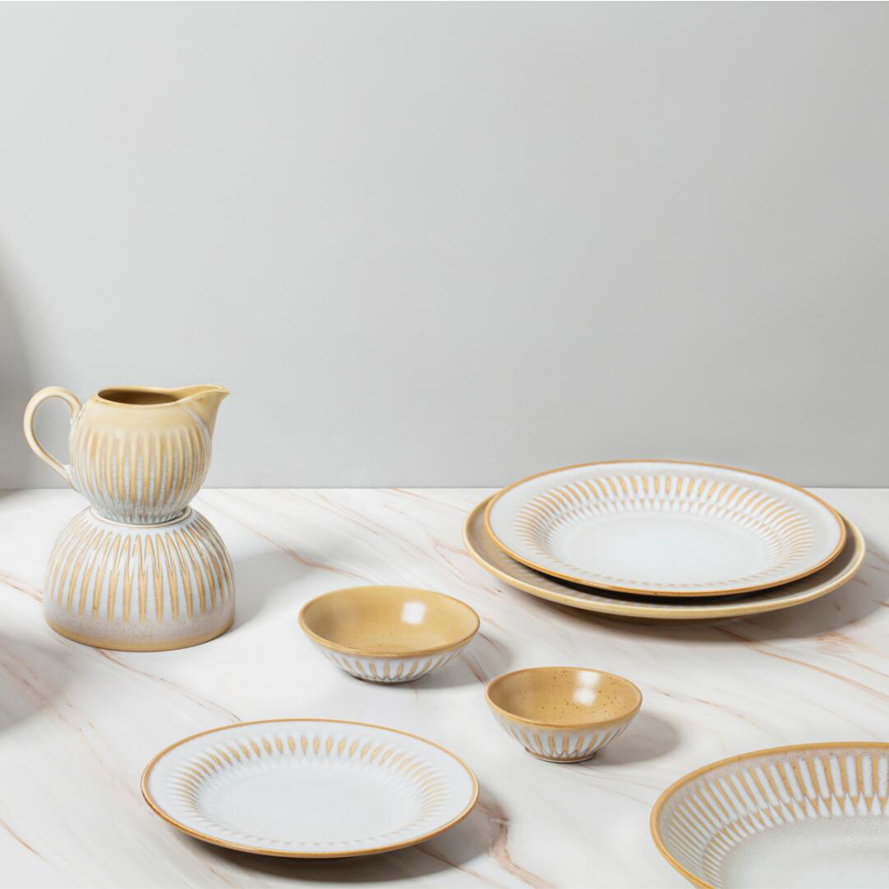 A modern take on retro style, Cottage is a collection that serves charm with every meal. The textured patterns and reactive glaze make for a unique setting, recalling an era of food as a time to come together. The Cottage line has a reactive glaze with soft gradients extending across the different products. The range is double fired in keeping with Luzerne’s internationally celebrated standards of durable, beautiful tableware.