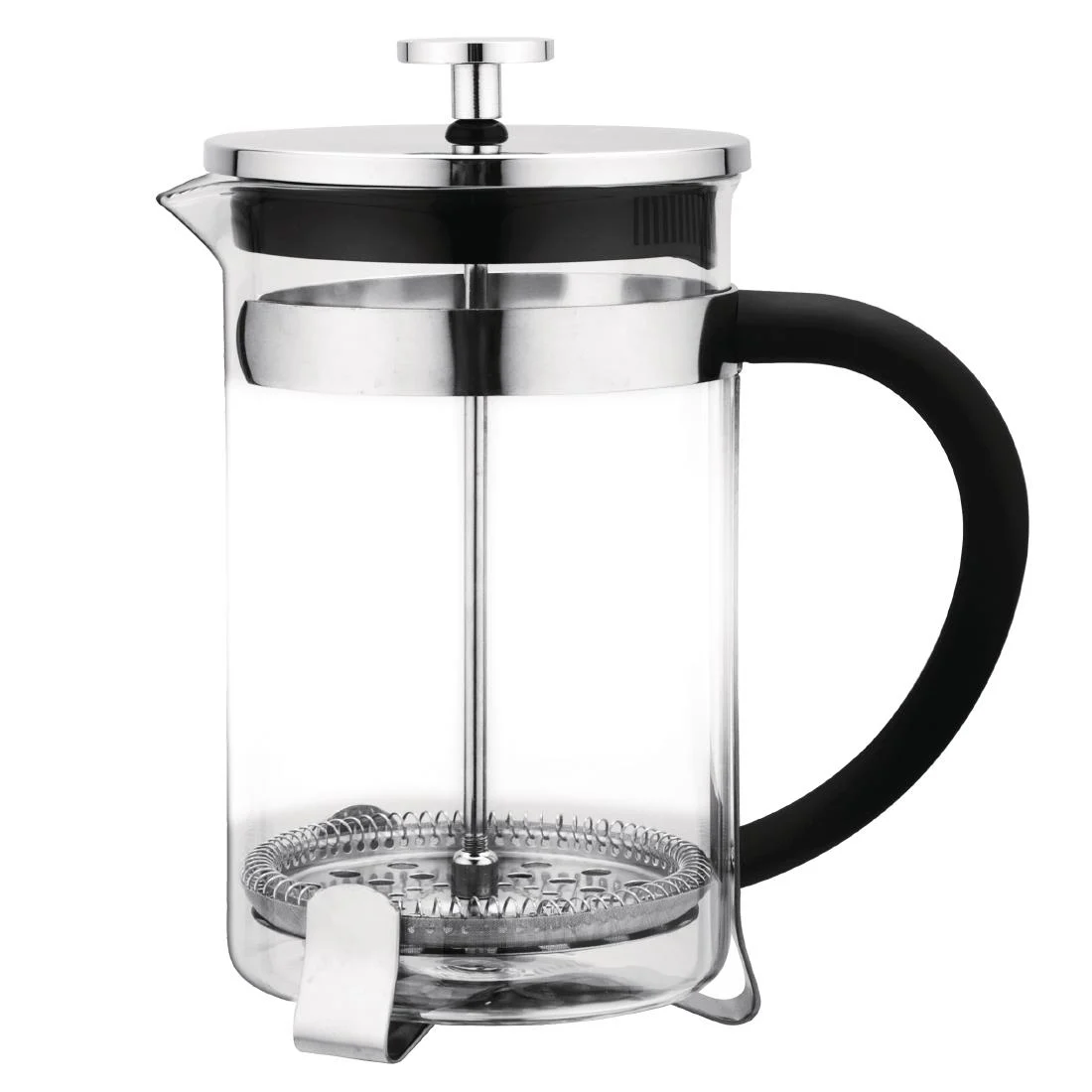 Serve delicious fresh coffee to bigger parties with this extra large contemporary glass cafetiere from Olympia. Customers will love the size of this cafetiere, which has a generous 1,500ml capacity and will easily pour up to 12 cups of coffee. Featuring a heat resistant handle for a comfortable and controlled pour, the attractive glass and stainless steel frame will complement any modern table setting perfectly.