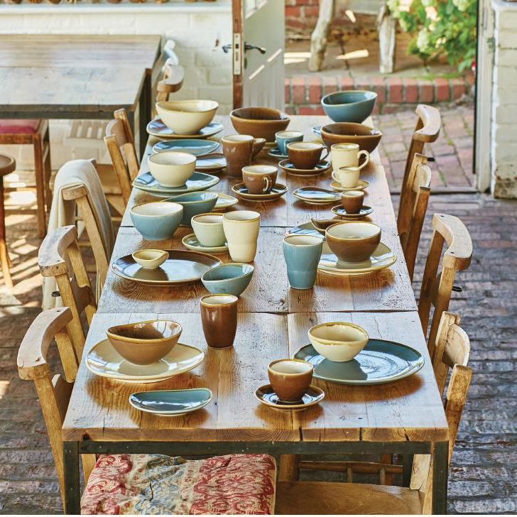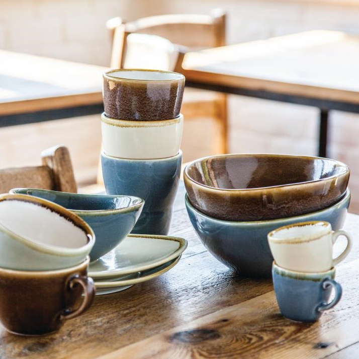 Designed by Olympia and inspired by nature, the Kiln collection is created with a natural design and handmade feel. Finished by artisans, the reactive glaze interacts with naturally occurring minerals and the oxygen in the air to create a finish that is unique to every piece. The rims are slightly waved and irregular to give an honest appearance and provide the perfect place to serve your homemade food.