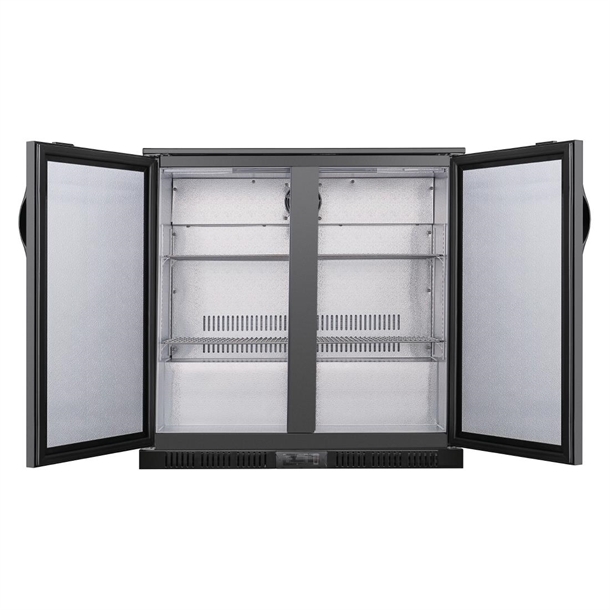Boost your chilled storage capacity with the Polar Double door back bar cooler. With its stylish solid black design, the fridge doesn't just look great - it's an energy-efficient option for keeping your most accessed ingredients effectively chilled whilst reducing running costs and environmental impact.