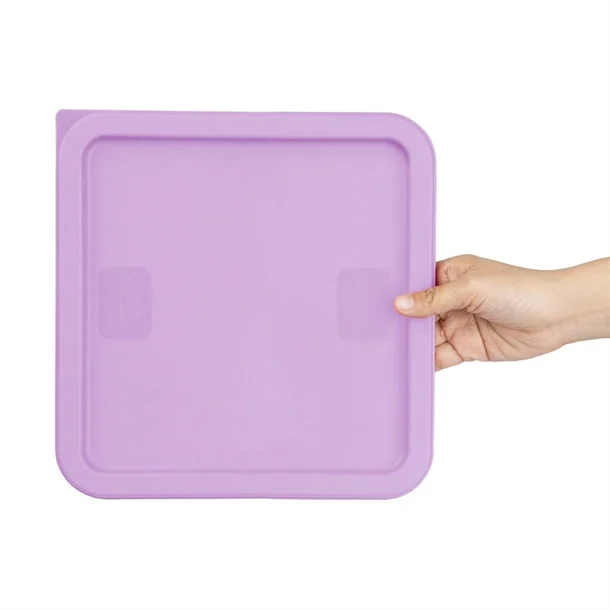Providing a high capacity food storage solution, the Hygiplas Polycarbonate Square Storage Container 10 Litre is the ideal addition to any professional kitchen. These containers are perfect for storing foods like sauces and dressings. Comes with Purple Lid generally used for allergens.