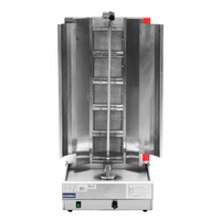 Ideal for preparing gyros, shawarmas, tacos al pastor, and doner kebabs, this vertical broiler machine/doner kebab machine excels in delivering perfectly cooked meats. It ensures the meat remains succulent and tender on the inside while achieving a delicately crisp exterior. This machine is a must-have for achieving the authentic taste and texture essential to these beloved dishes.