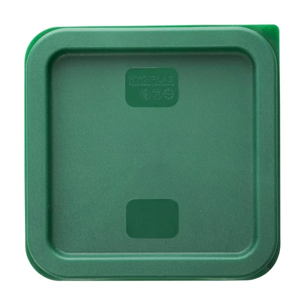 Keep your kitchen tidy and organised with this square food storage container lid by Hygiplas. This lid in Green is designed to fit 5.5 & 7Ltr containers, keeping food fresher for ages and safe from contamination.Its green lid is handy for colour coding your kitchen, so you can keep fruit and veg produce inside without cross contaminating. The clear, snug fit ensures that once sealed, the lid protects against spills and locks in freshness.