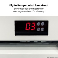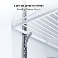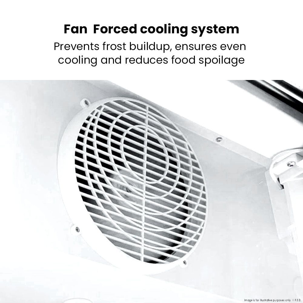 Aside from its fashionable look, this masterpiece comes made with an illuminated canopy, self-closing door, a white powder-coated steel plate, automatic defrost, and heavy-duty castors—a powerful compact fridge that slots well within any kitchen, workspace, or backroom.