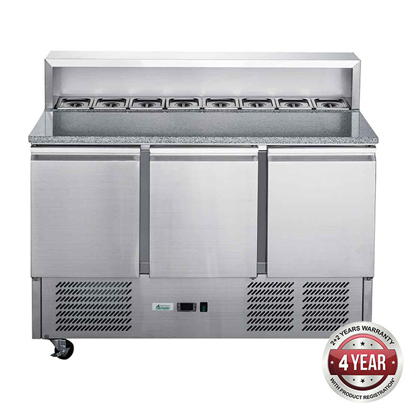 Three door glass cover and marble top fridge 402L take 8 x 1/6 pans 1365x700x1107