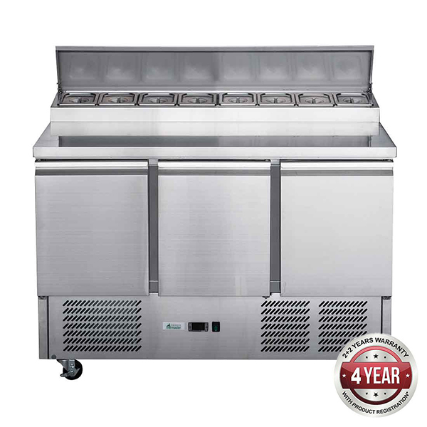Three Door Salad Preparation Top Fridge 392L take 8 x 1/6 pans 1365x700x1020