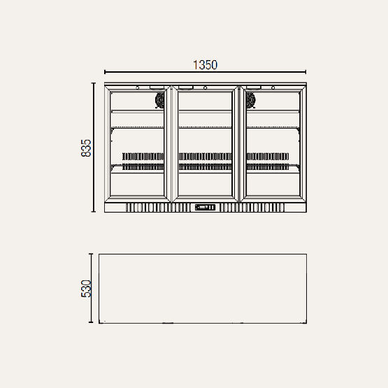 Three Glass Hinged Door Backbar Display Refrigerator 570L, UBC570