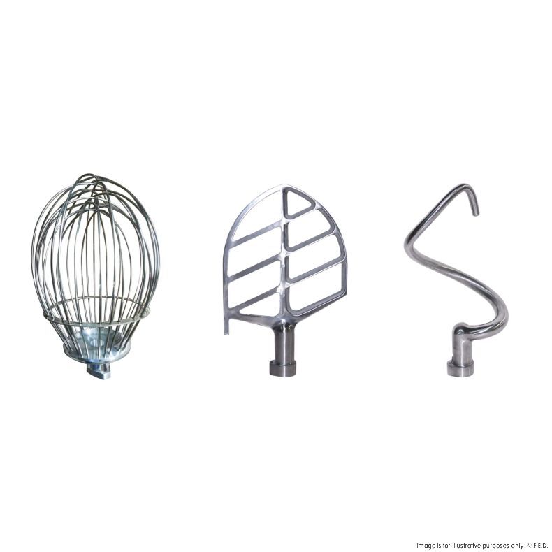 • Safety guard included a wire whisk, a dough hook, and a flat beater